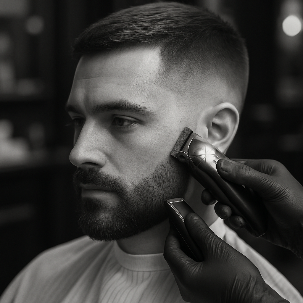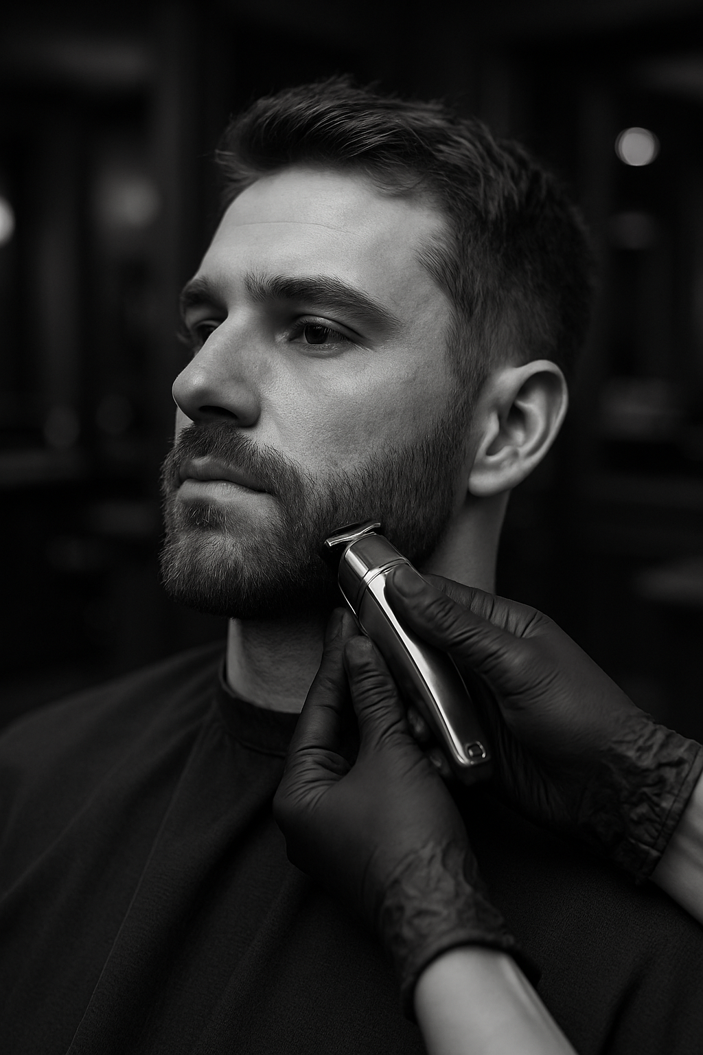 Travail minutieux de la barbe, lignes nettes et équilibre parfait pour une élégance maîtrisée.